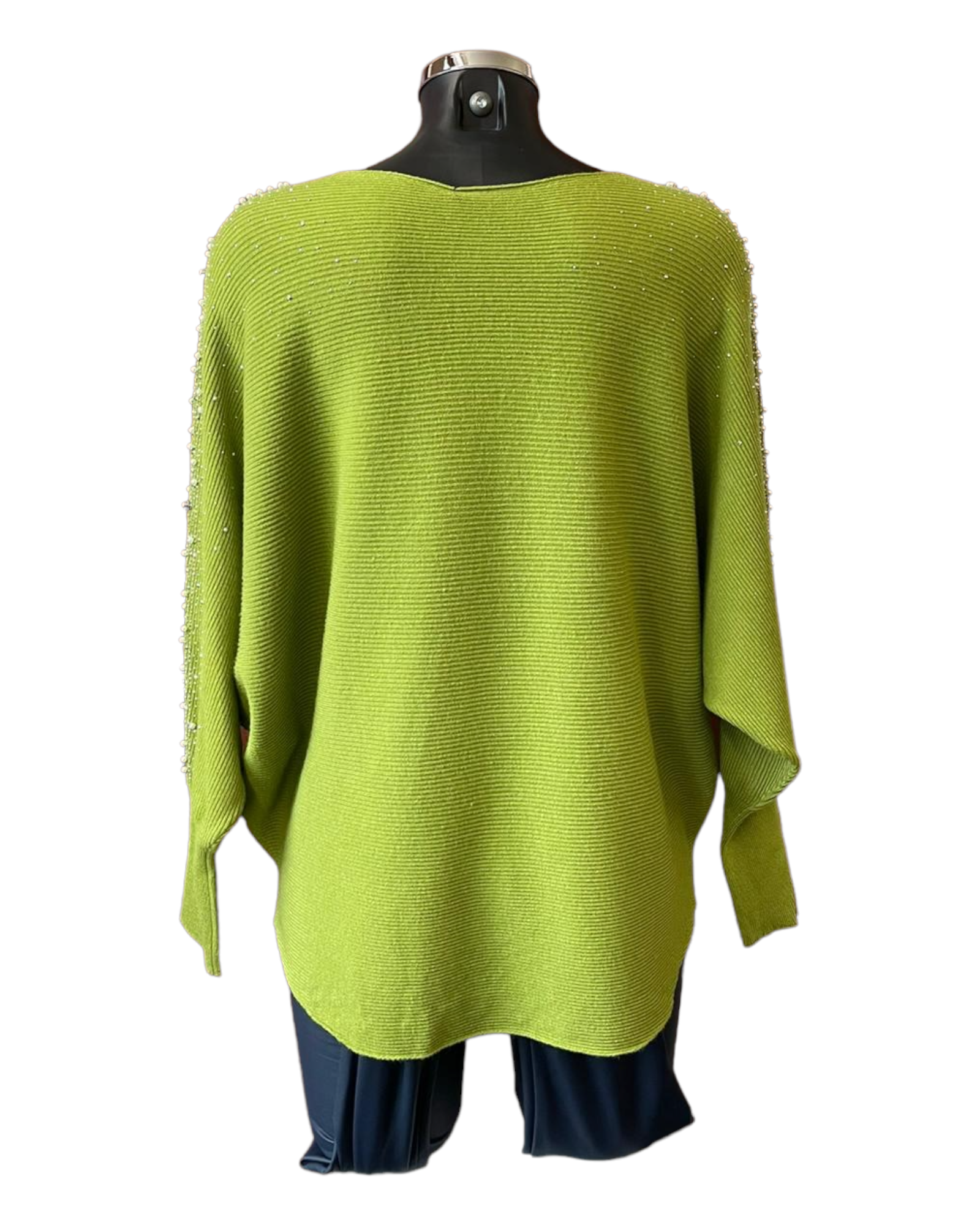 Pippa Pearl sparkle sleeve batwing jumper - Lime