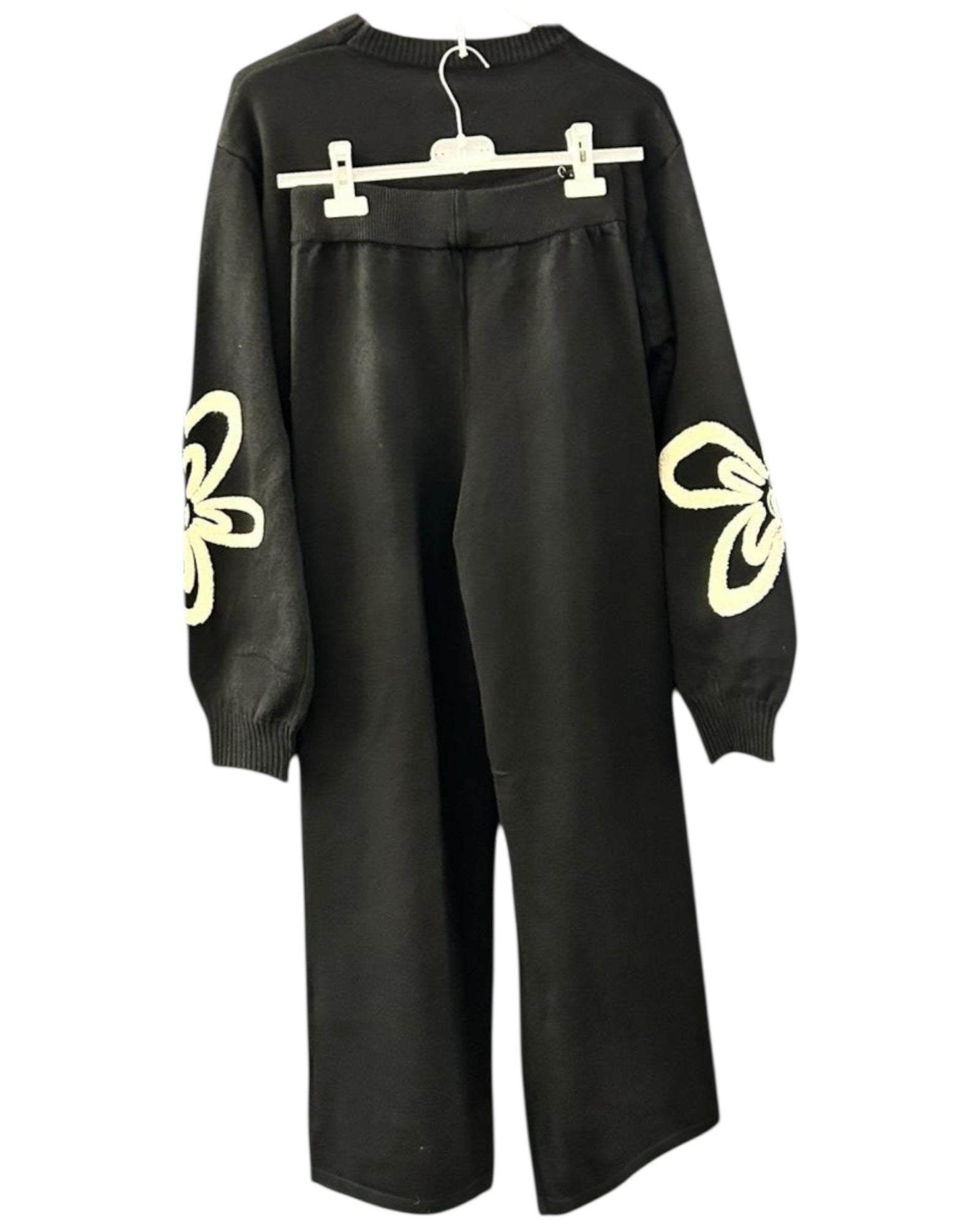 Milano flower range premium knit co ord trouser set - Black