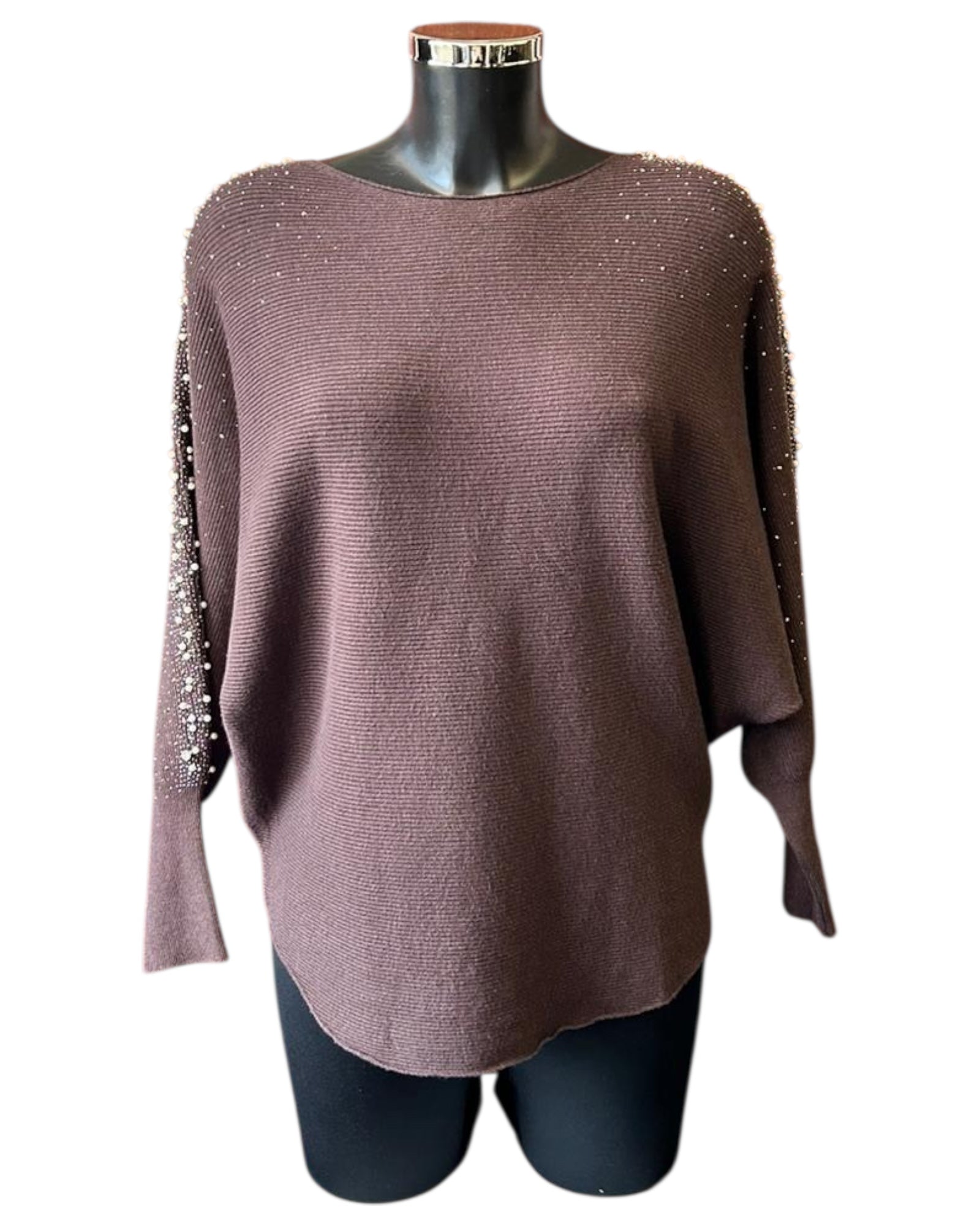 Pippa Pearl sparkle sleeve batwing jumper - Chocolate