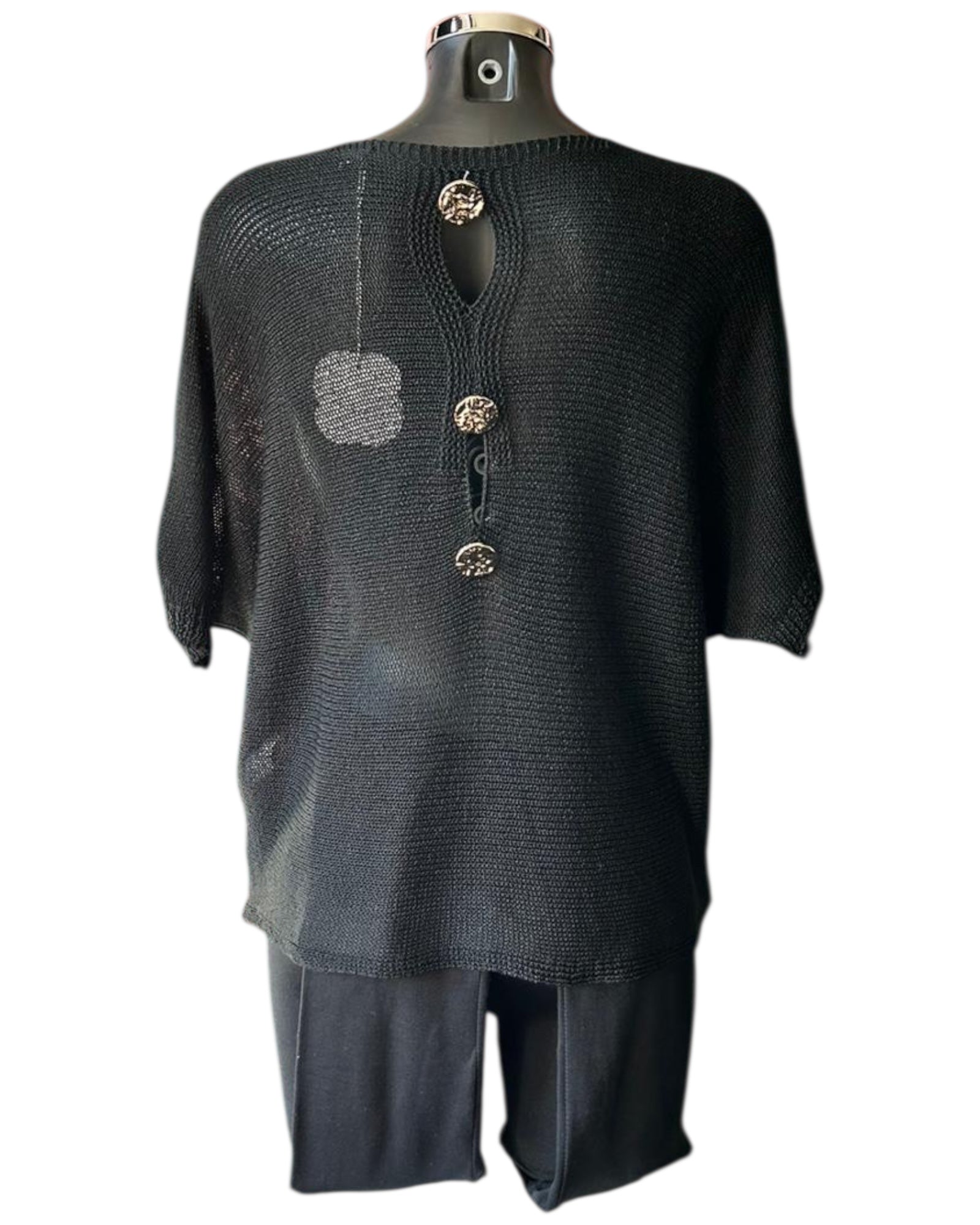 Tallulah fine knit button back jumper - Black